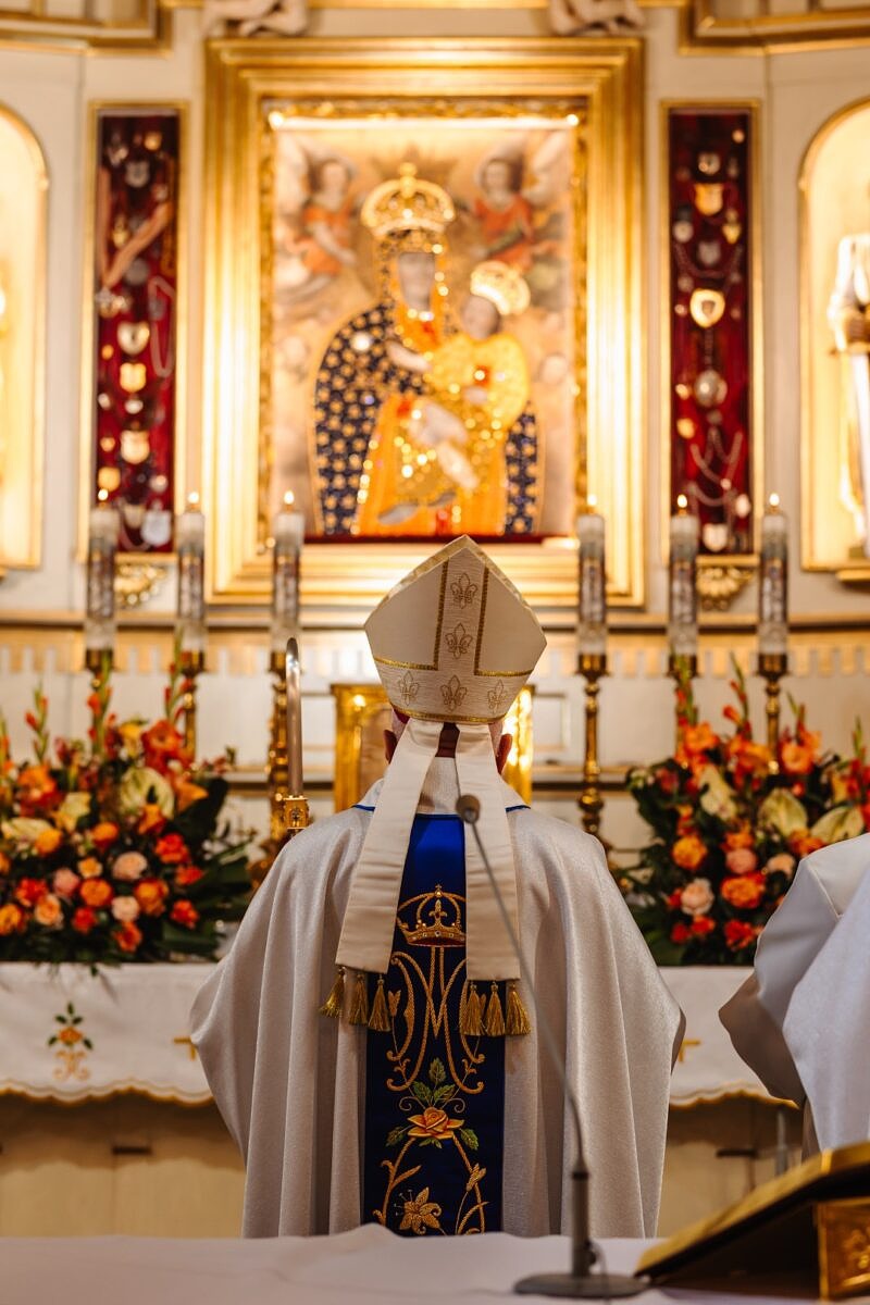 Uroczystość odpustowa ku czci Narodzenia NMP połączona z Jubileuszem 100. rocznicy konsekracji kościoła oraz 700-lecia ustanowienia parafii w Ostrowąsie” pod przewodnictwem biskupa włocławskiego Krzysztofa Wętkowskiego w dniu 14 września 2025 roku. Poświęcenie nowej jubileuszowej sukienki na cudownym obrazie Matki Bożej Ostrowąskiej. Autor zdjęć – Klaudia Deruś. Serdecznie dziękujemy!